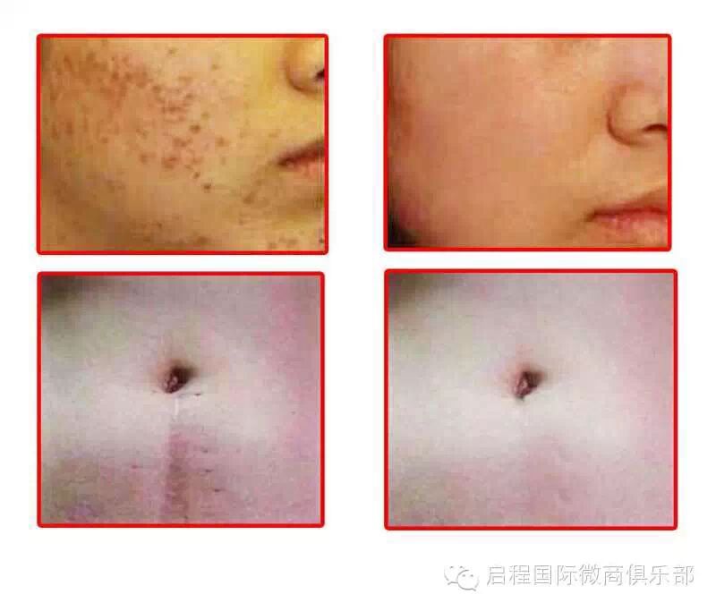 功效:主要针对各种身体疤痕,进行淡斑,祛疤,同时兼具抗皱,祛斑,细腻平复肌肤功能 。对痘印 疤痕 刨腹产疤痕 特别有效。